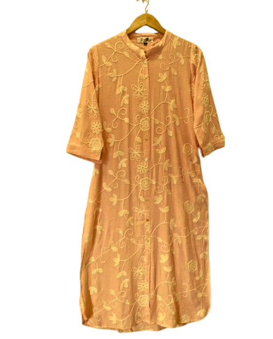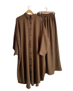 2 piece Stitched Dark Ethnic Fabric With Striking Orange Lace Suit