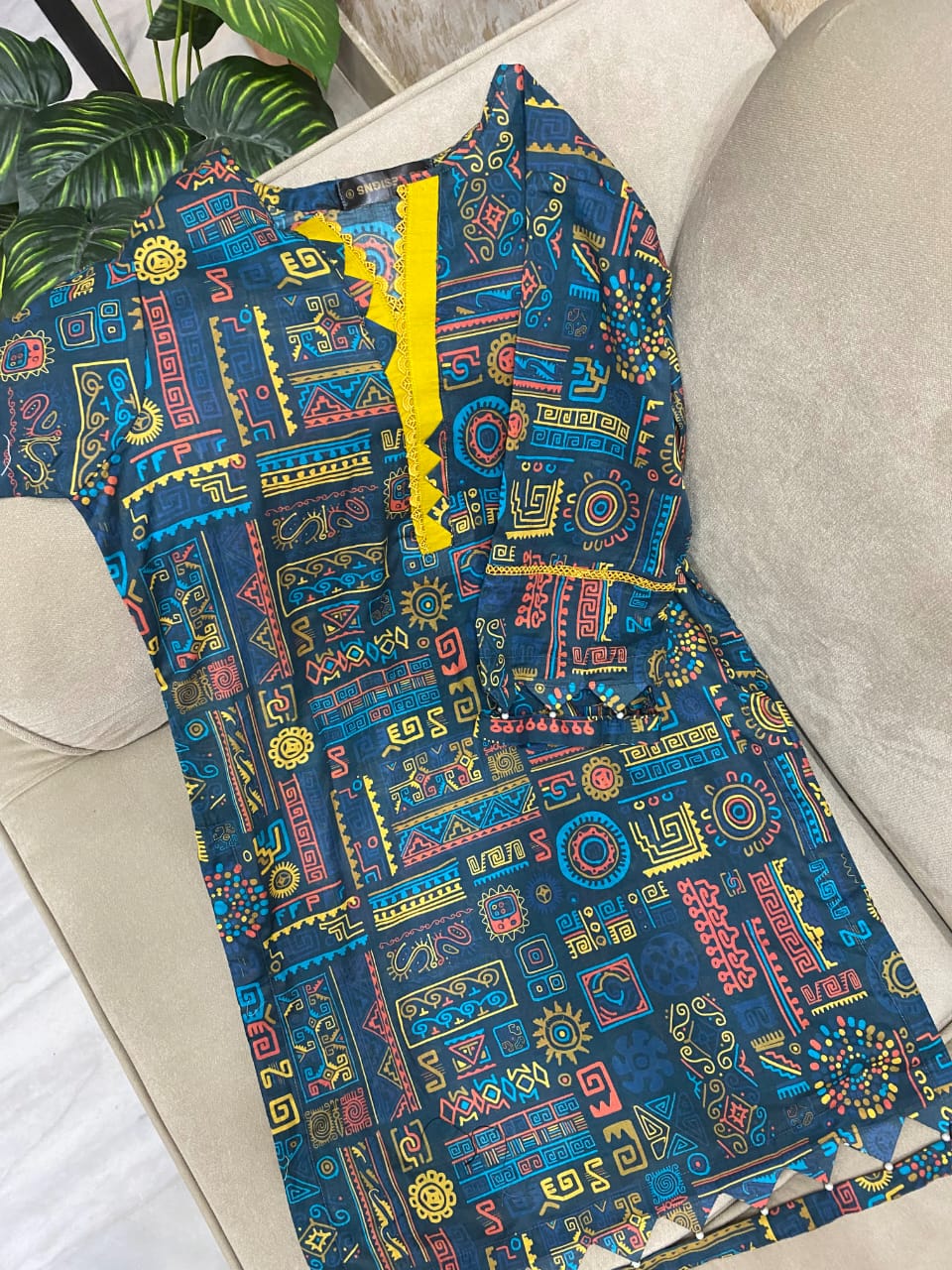 2 piece Stitched Tribal Fusion Geometric Print Suit